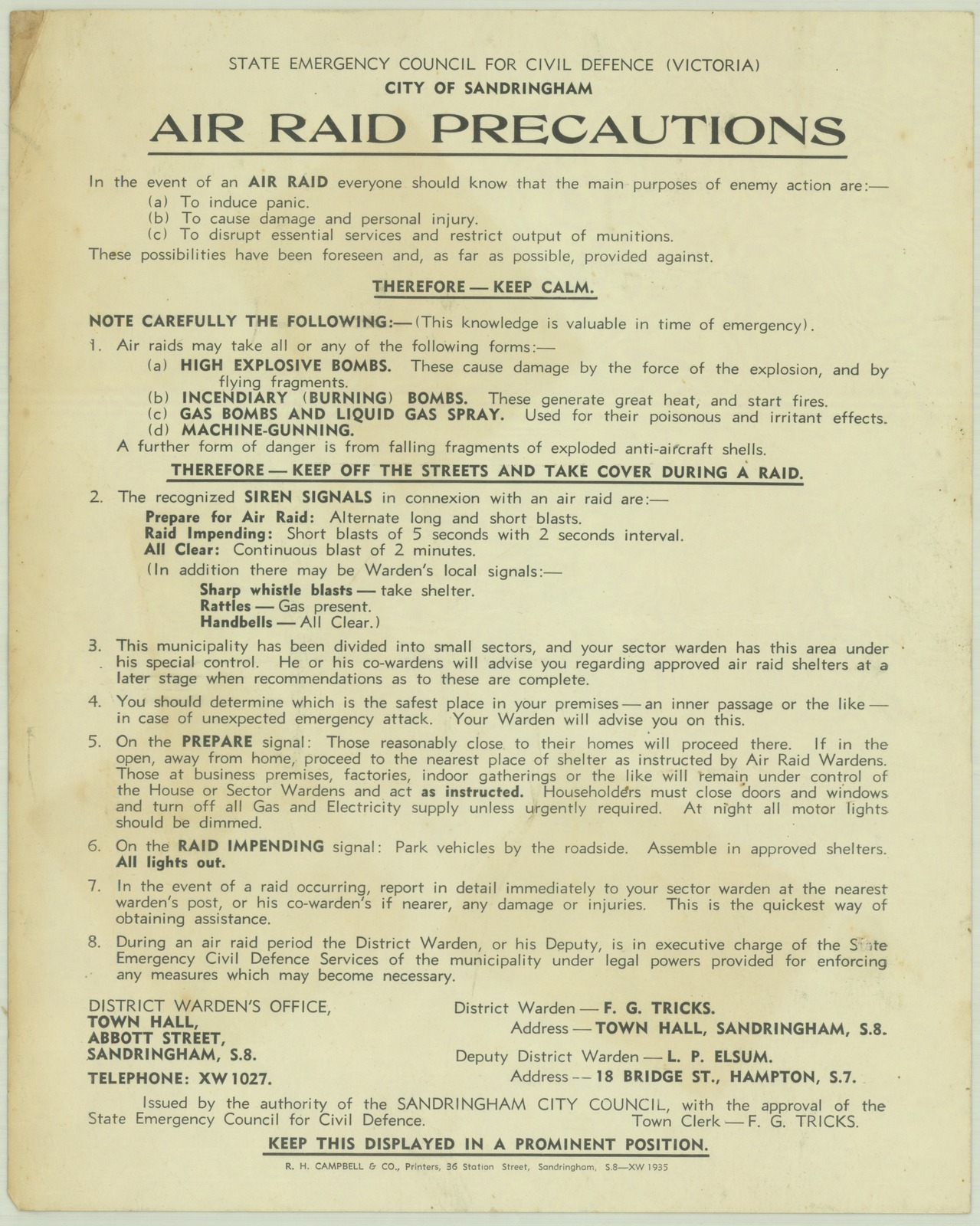 Early in the war, the threat of air raids was taken seriously, even in cities as far south as Melbourne. As it turned out, Darwin, in the far North, was the only Australian city ever subjected to an air-raid.