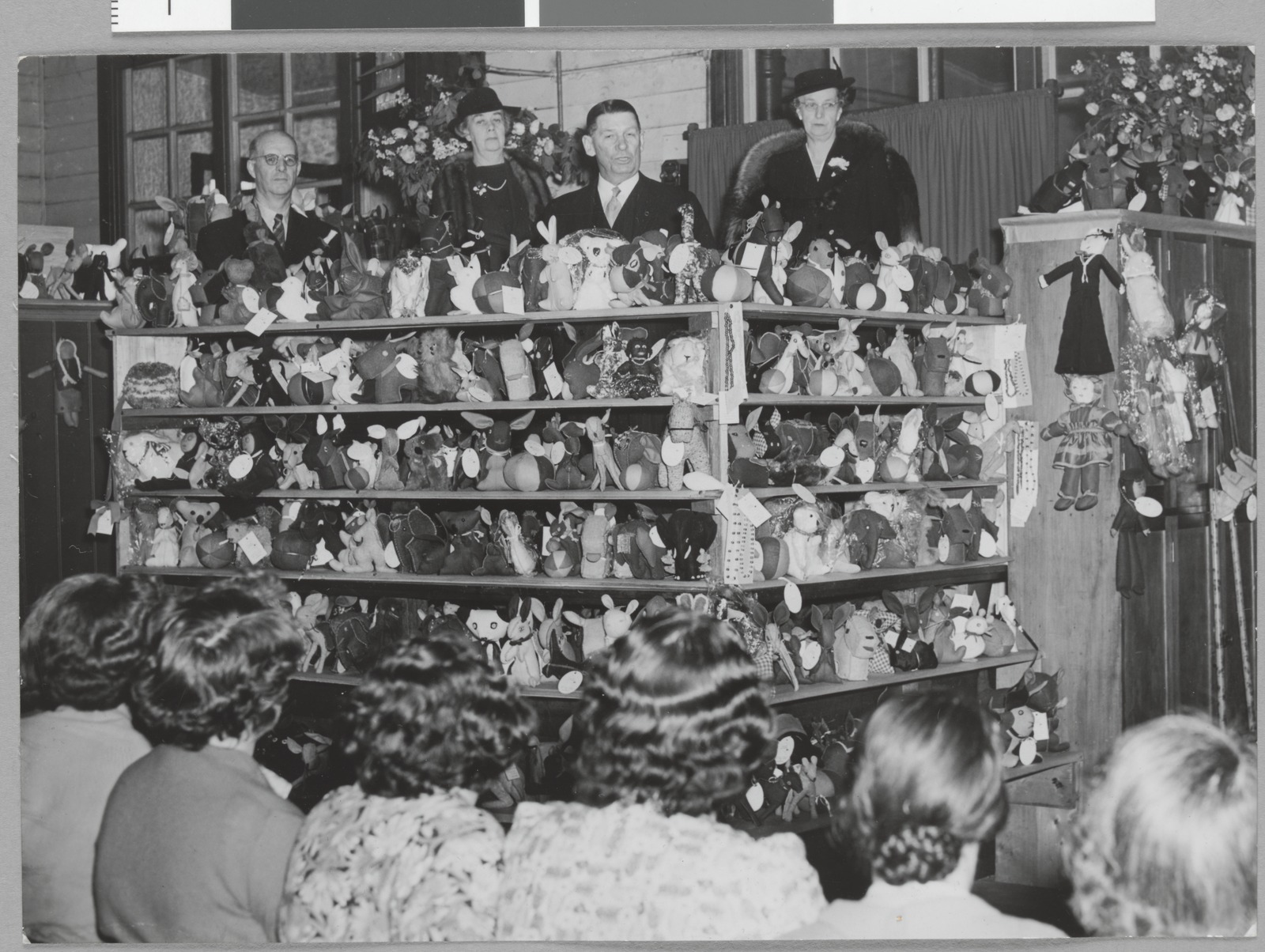 Britain ran short of many things during the war, including children's toys. Australian women responded by making large numbers of soft toys (including many kangaroos) for donation.